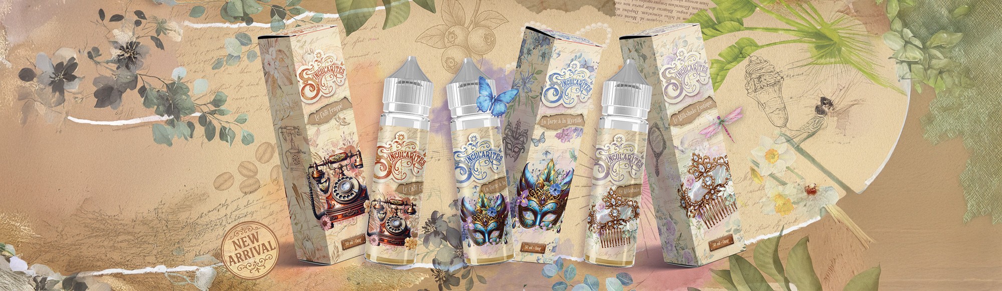 Nos crĂ©ations â principalement des e-liquides â sont des expĂ©riences sensorielles, visuelles et narratives pensĂ©es comme des rituels.